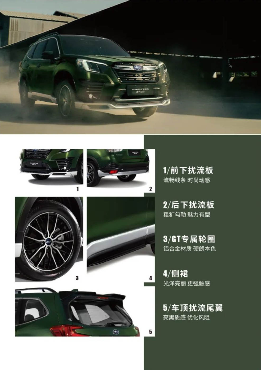 秉承着斯巴鲁“以人为本”造车理念,Forester森林人GT定位更清晰:符合追逐运动时尚、豪华性能和高品质生活人群的需求,并以其动感外观,强劲动力、百项安全配置征服市场。