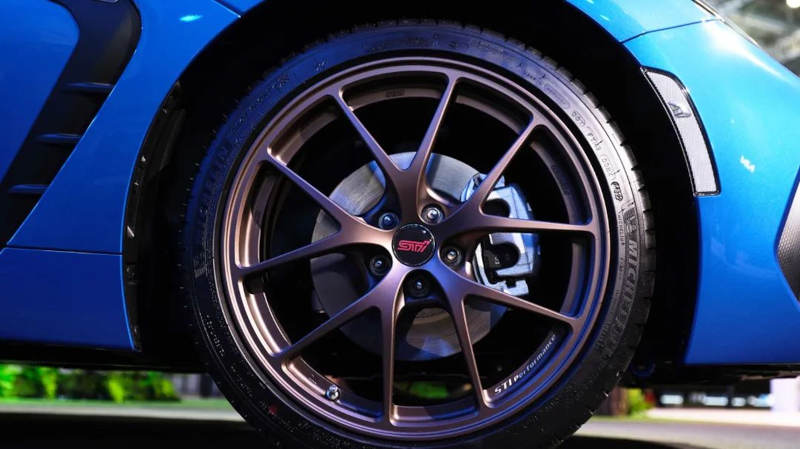 外观方面,这台SUBARU BRZ采用了BBS定制的18寸古铜色锻造轮圈。该轮圈在极限情况下更加可靠,同时实现车辆轻量化,提升转向的响应。车身侧面,配备前翼子板装饰板,消光黑色涂装与银色“STI”标识交相辉映,带来更强的冲击力。迎宾踏板配有“STI”标识,在开门一瞬间,给驾驶者带来强烈的驾驶欲望。